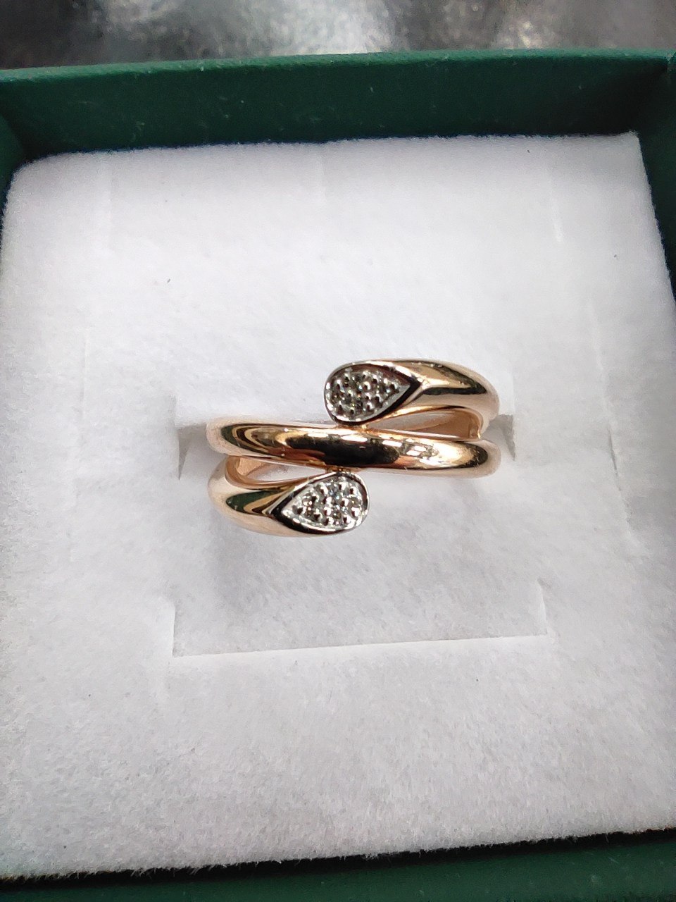 Кольцо из красного и белого золота 585 пробы с бриллиантами — это изысканное украшение, сочетающее в себе благородство металлов и блеск драгоценных камней
