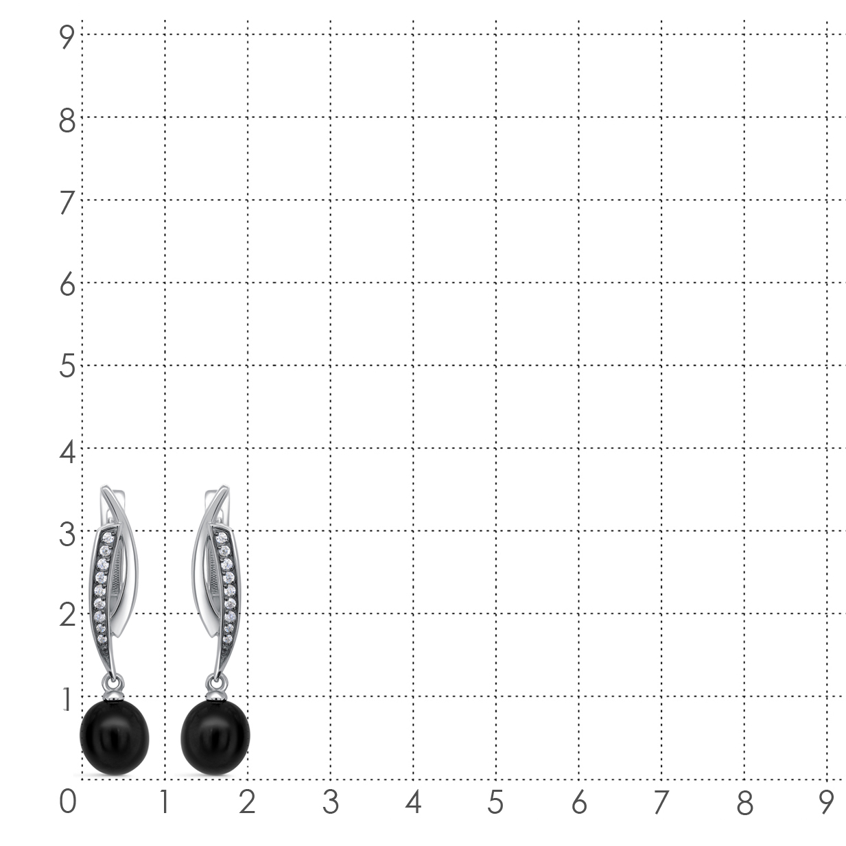 Удлинённые серьги с подвеской из чёрного жемчга выполнены из серебра 925 пробы