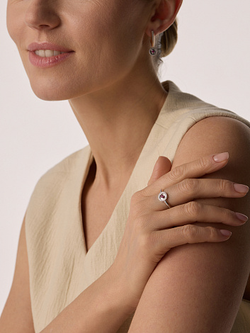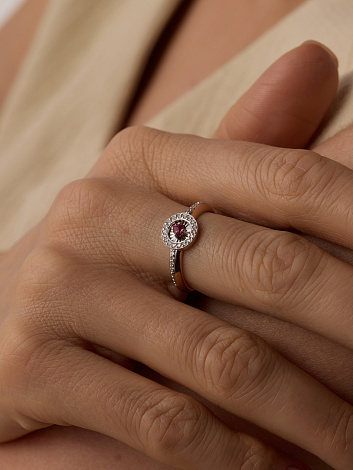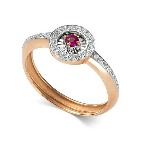 Потрясающее кольцо из красного и белого золота 585 пробы, украшенное ярким рубином и сверкающими бриллиантами. Смелое сочетание теплой гаммы золотого покрытия и интенсивного красного цвета камня привлекает взгляды и подчеркивает индивидуальность владелицы. Представлено брендом АЛЬКОР. Средняя характеристика камней: