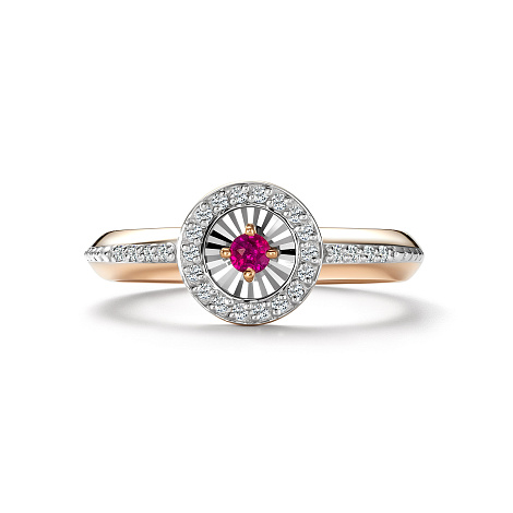Потрясающее кольцо из красного и белого золота 585 пробы, украшенное ярким рубином и сверкающими бриллиантами