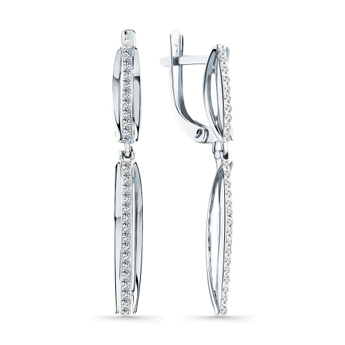 Удлиненные серьги из белого и красного золота 585 пробы с дорожками сверкающих фианитов и английской застежкой — это элегантное украшение, подчеркивающее вашу индивидуальность и утонченный вкус