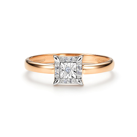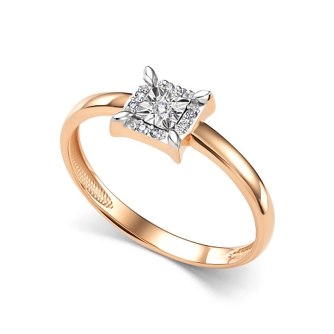 Кольцо из красного и белого золота 585 пробы, украшенное сверкающими бриллиантами, демонстрирует изящный дизайн и великолепную игру цвета. Прекрасный выбор для тех, кто ценит роскошь и изысканность украшений. Представлено брендом АЛЬКОР. Средняя характеристика камней: 1 Бриллиант Круг 57 0.007 4/5, 8 Бриллиант Круг 57 0.026 4/5 В комплект поставки входит: