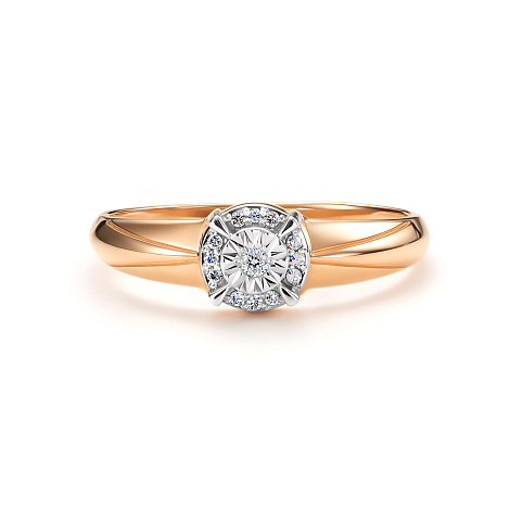 Кольцо из красного и белого золота 585 пробы, украшенное сверкающими бриллиантами, демонстрирует изящный дизайн и великолепную игру цвета. Прекрасный выбор для тех, кто ценит роскошь и изысканность украшений. Представлено брендом АЛЬКОР. Средняя характеристика камней: 1 Бриллиант Круг 57 0.015 4/5, 12 Бриллиант Круг 57 0.039 4/5 В комплект поставки входит: