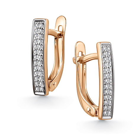 Изящные серьги из красного и белого золота 585 пробы, украшенные сверкающими бриллиантами. Грамотно подобранное сочетание оттенков золота подчеркивает изысканность изделий. Надежный английский замок обеспечит комфорт и уверенность при носке. Представлено брендом АЛЬКОР. Средняя характеристика камней: 52 Бриллиант Круг 17 0.109 2/3 В комплект поставки входит:
