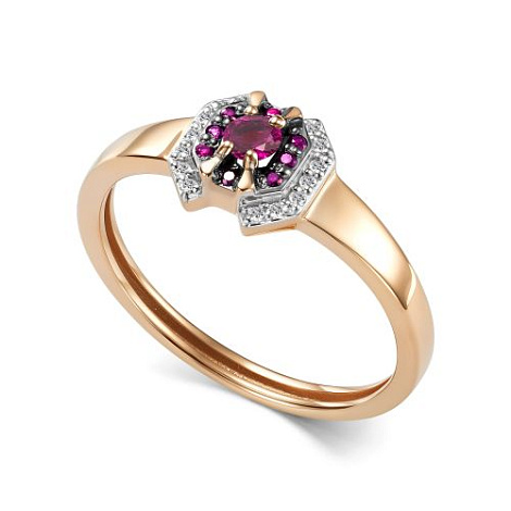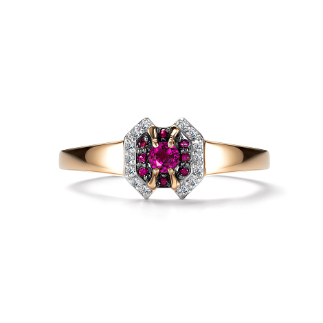 Фантастичное кольцо из красного и белого золота 585 пробы, украшенное насыщенными рубинами и сверкающими бриллиантами. Жаркий румянец рубинов в сочетании с игривостью бриллиантов дарит восхитительный танец огней, создав красивый контраст с благородством золота. Представлено брендом АЛЬКОР. Средняя характеристика камней: 14 Бриллиант Круг 17 0.043 2/3, 1 Рубин Круг 0.12 2/2, 8 Рубин Круг 0.056 2/2 В комплект поставки входит: