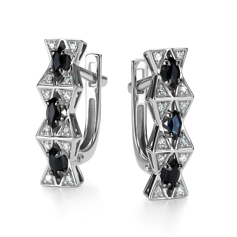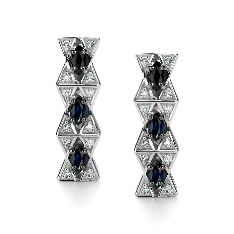 Элегантные серьги из белого золота 585 пробы, украшенные сапфирами и бриллиантами