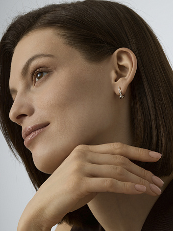 Элегантные серьги из красного и белого золота 585 пробы, украшенные бриллиантами. Сочетание двух оттенков металла придаёт украшению современный и выразительный вид, а надёжный английский замок обеспечивает комфорт и безопасность при носке. Представлено брендом АЛЬКОР. Средняя характеристика камней: 18 Бриллиант Круг 57 0.075 4/5, 2 Бриллиант Круг 57 0.045 4/5 В комплект поставки входит: