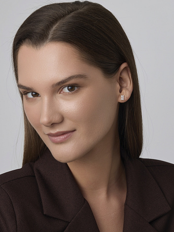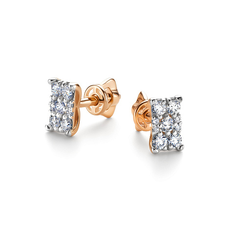 Изысканные серьги-пусеты из красного и белого золота 585 пробы, украшенные бриллиантами