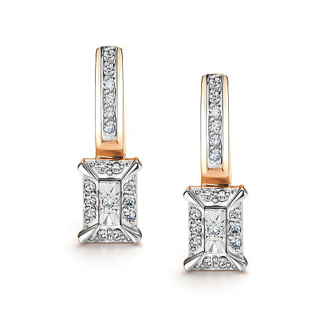 Элегантные серьги из красного и белого золота 585 пробы, украшенные бриллиантами. Сочетание двух оттенков металла придаёт украшению современный и выразительный вид, а надёжный английский замок обеспечивает комфорт и безопасность при носке. Представлено брендом АЛЬКОР. Средняя характеристика камней: 34 Бриллиант Круг 57 0.137 4/5 В комплект поставки входит: