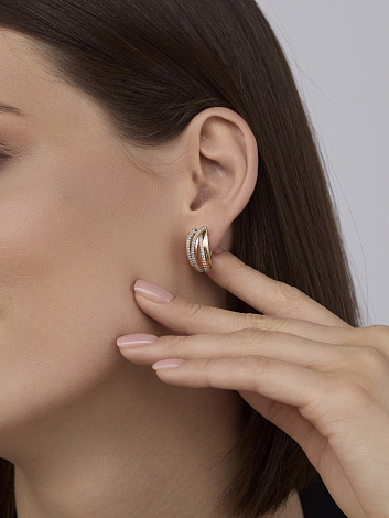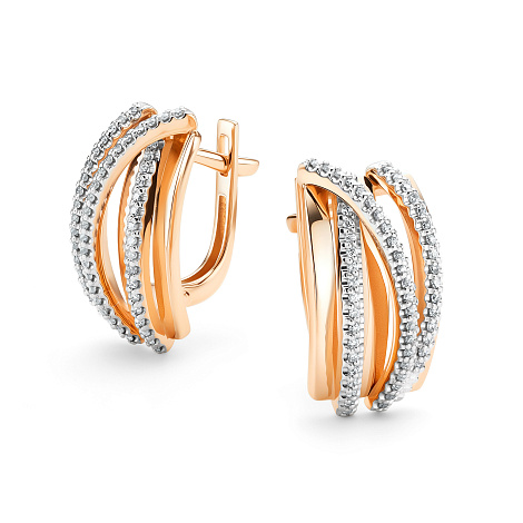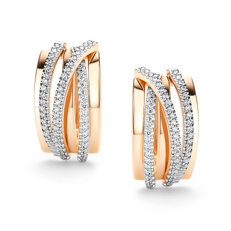 Стильные серьги из красного и белого золота 585 пробы, украшенные сверкающими бриллиантами