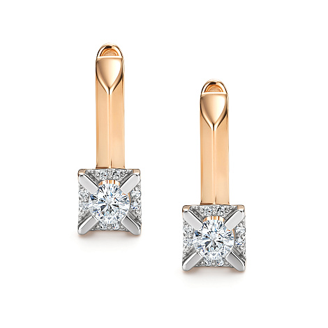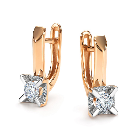 Элегантные серьги из красного и белого золота 585 пробы, украшенные сверкающими бриллиантами. Сочетание двух оттенков металла придаёт украшению современный и выразительный вид, а надёжный английский замок обеспечивает комфорт и безопасность при носке. Представлено брендом АЛЬКОР. Средняя характеристика камней: