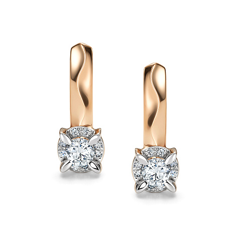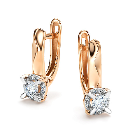 Элегантные серьги из красного и белого золота 585 пробы, украшенные сверкающими бриллиантами