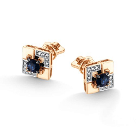 Изысканные серьги-пусеты из красного и белого золота 585 пробы, украшенные сапфирами и бриллиантами