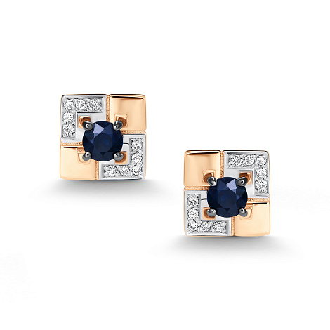 Серьги, комбинированное золото, сапфир, проба 585