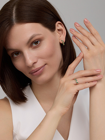 Кольцо из красного золота 525 пробы с изумрудами — это изысканное украшение, которое сочетает в себе благородство золота и чарующую зелень изумруда