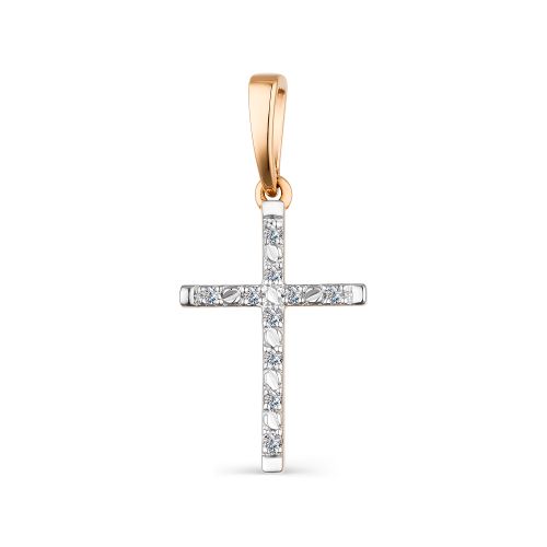 Декоративный крест с россыпью бриллиантов в сочетании красного и белого золота 585 пробы, от бренда Алькор.