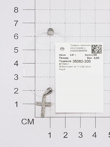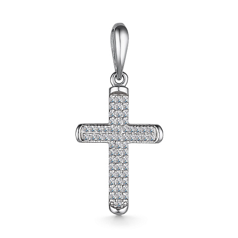 Подвеска в виде декоративного креста украшена россыпью сверкающих бриллиантов, выполнена из белого золота 585 пробы
