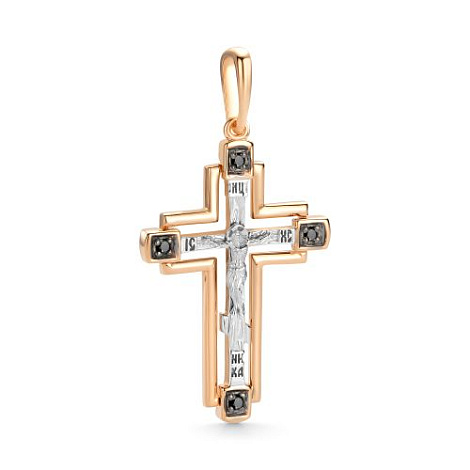 Православный крестик из красного и белого золота 585 пробы с чёрными бриллиантами — это современное воплощение традиционного символа веры