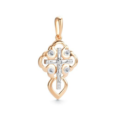 Православный крестик из красного и белого золота 585 пробы с бриллиантами — это символ веры, воплощённый в изысканном ювелирном изделии