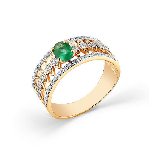 Элегантное кольцо из красного и белого золота 585 пробы с изумрудом и бриллиантами