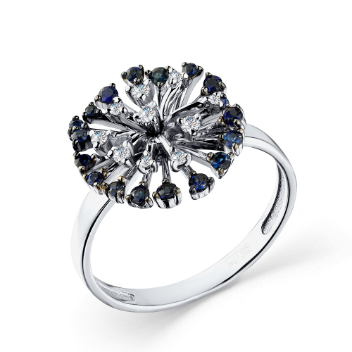 Изысканное кольцо из белого золота 585 пробы в дизайне одуванчика, украшенное сапфирами и бриллиантами