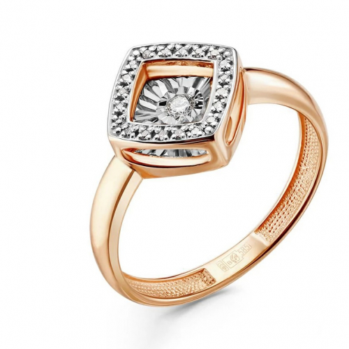 Стильное кольцо выполнено с сочетанием красного и белого золота 585 пробы, украшенное сияющими бриллиантами