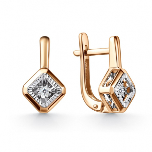 Серьги, комбинированное золото, бриллиант, проба 585