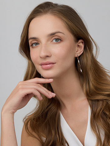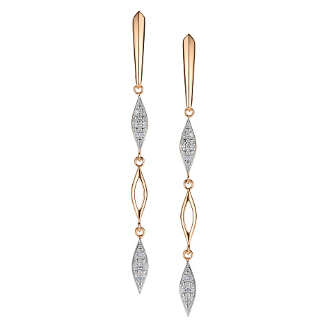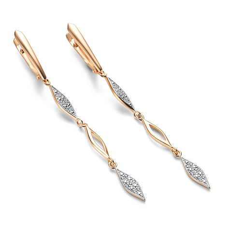 Удлинённые серьги из красного и белого золота 585 пробы, украшенные сверкающими бриллиантами