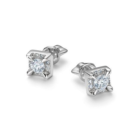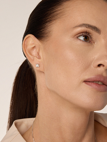 Элегантные пусеты выполнены из качественного белого золота 585 пробы, подчеркивая благородство и изысканность