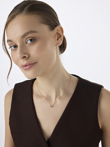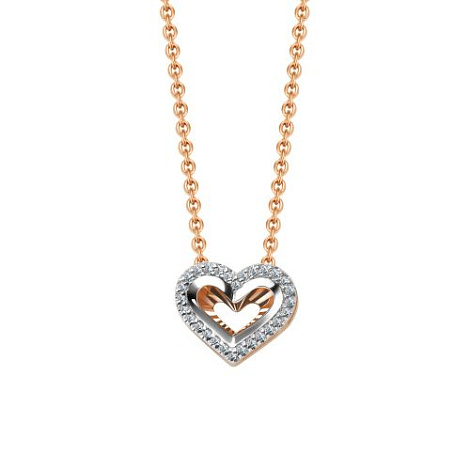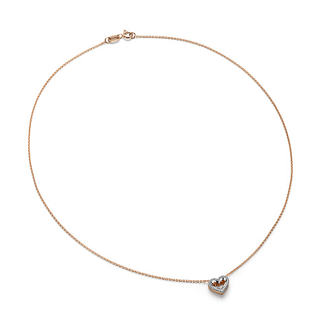 Изящное колье выполнено из красного и белого золота 585 пробы и украшено подвеской в форме сердца, инкрустированной сверкающими бриллиантами