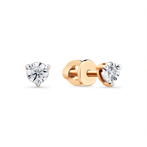 Изысканные серьги-пусеты из красного и белого золота 585 пробы, украшенные бриллиантами