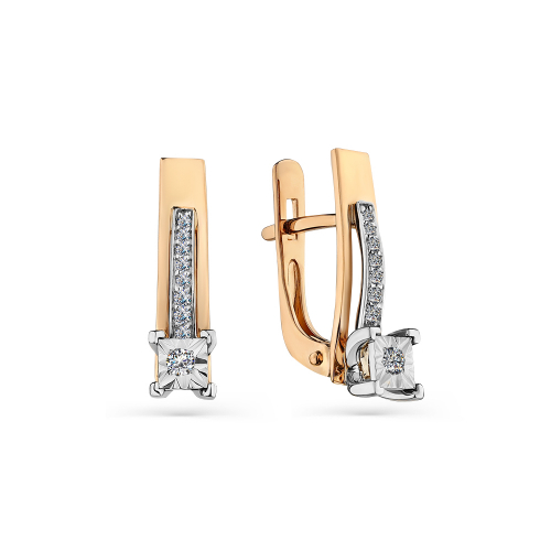 Элегантные серьги из красного и белого золота с бриллиантами. Сочетание двух оттенков металла придаёт украшению современный и выразительный вид, а надёжный английский замок обеспечивает комфорт и безопасность при носке. Представлено брендом MASTER BRILLIANT. Средняя характеристика камней: 2 Бр Круг 0,056; 6 Бр Круг 0,042; 10 Бр Круг 0,04 В комплект поставки входит: