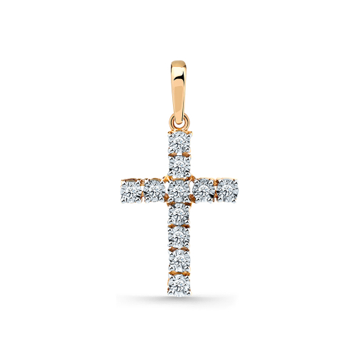 Изысканная подвеска в дизайне креста из красного золота 585 пробы, украшенная бриллиантами