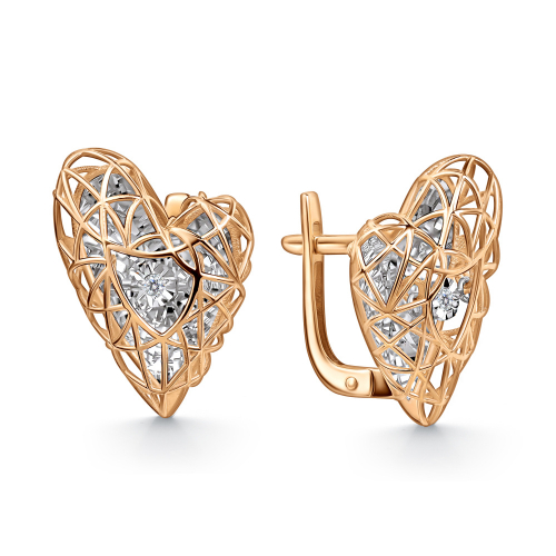 Элегантные серьги из красного и белого золота 585 пробы с танцующими бриллиантами