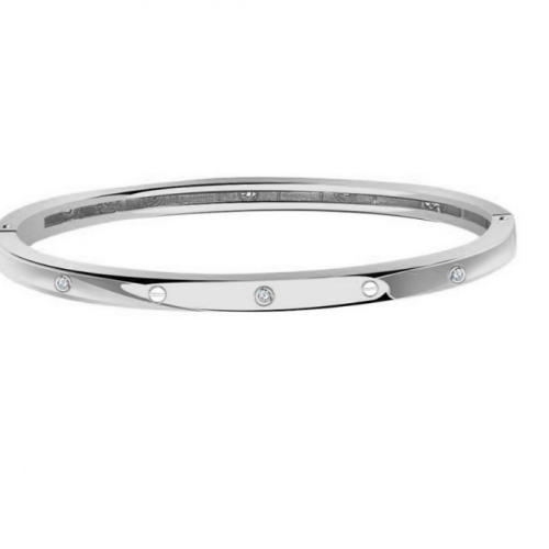Стильный браслет, украшенный фианитами, выполнен из белого золота 585 пробы. Жесткий браслет — украшение, которое никогда не выходит из моды. Данное украшение является репликой зарубежного бренда. Изделие представлено брендом "BERGER". Средняя характеристика камней: 6 Фианит. В комплект поставки входит:
