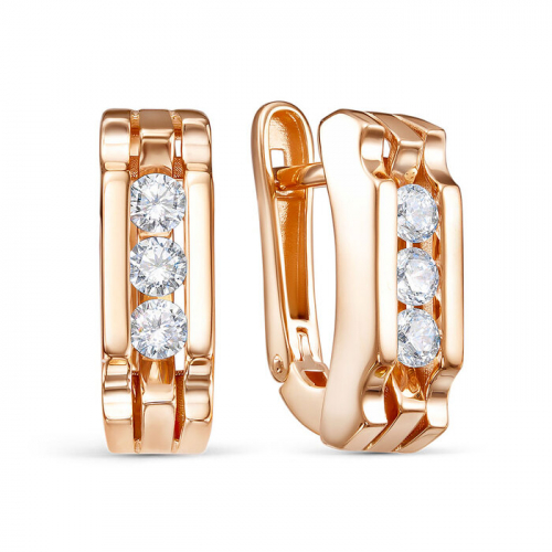 Элегантные серьги из красного золота 585 пробы с фианитами и английским замком. Тёплый оттенок металла и сияние камней создают гармоничное сочетание, а надёжная застёжка обеспечивает комфорт и безопасность при носке. Представлено брендом BERGER. В комплект поставки входит: