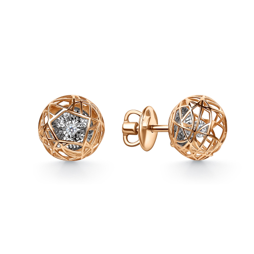 Изысканные серьги-пусеты из красного и белого золота 585 пробы с танцующими бриллиантами