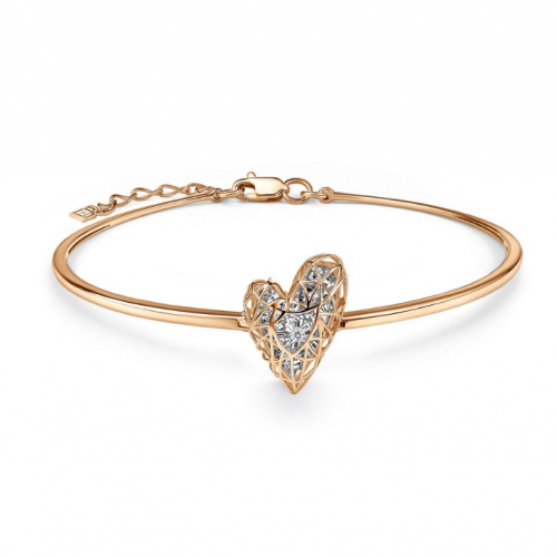 Жёсткий браслет из красного и белого золота 585 пробы с танцующим бриллиантом — это современное и стильное украшение