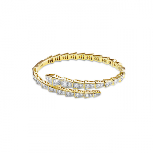 Браслет в виде змеи из желтого золота, украшенный фианитами, — это эффектное и стильное украшение, которое привлечет внимание