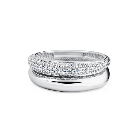 Элегантное кольцо выполнено из качественного серебра 925 пробы и украшено дорожкой сверкающих фианитов