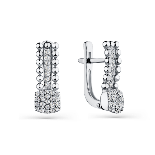 Элегантные серьги из белого золота 585 пробы, украшенные бриллиантами. Классический английский замок обеспечивает надёжность и комфорт, а чистота металла и блеск камней делают их универсальным украшением для любого случая. Представлено брендом MASTER BRILLIANT. Средняя характеристика камней: 44 Бр Круг 0,308; 12 Бр Круг 0,048 В комплект поставки входит: