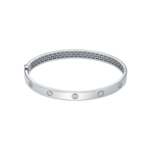 Изысканный жёсткий браслет из белого золота 585 пробы, инкрустированный бриллиантами. Лаконичный дизайн и благородный блеск металла создают утончённый и современный образ, который подчеркнёт стиль и элегантность своей обладательницы. Представлено брендом ROSE GRACE. Средняя характеристика камней: 6 Бр Кр 57 1,95-2,05 30-40 4/6А - 0,19 ct. В комплект поставки входит: