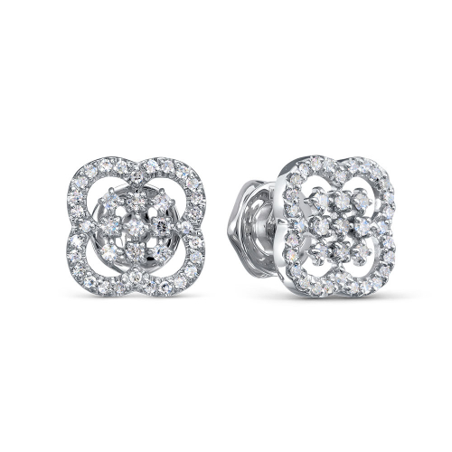 Изысканные серьги-пусеты из белого золота 585 пробы, украшенные бриллиантами