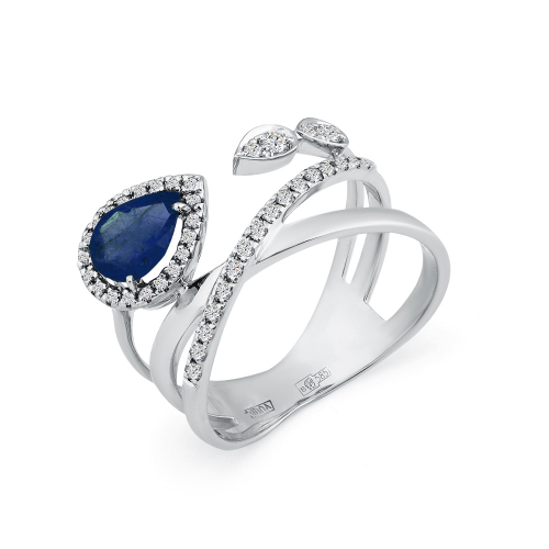 Сапфир располагается в центре композиции, напоминая каплю вечернего неба. Вокруг него рассыпаны 40 бриллиантов разных размеров, формируя сложное, сияющее обрамление. Это сочетание создаёт глубокий визуальный эффект и придаёт кольцу статус ювелирного произведения. Средняя характеристика камней: 1 Сапфир н. Гр 7*5 0,74; 18 Бр Круг 0,158; 20 Бр Круг 0,078; 2 Бр Круг 0,053 В комплект поставки входит: