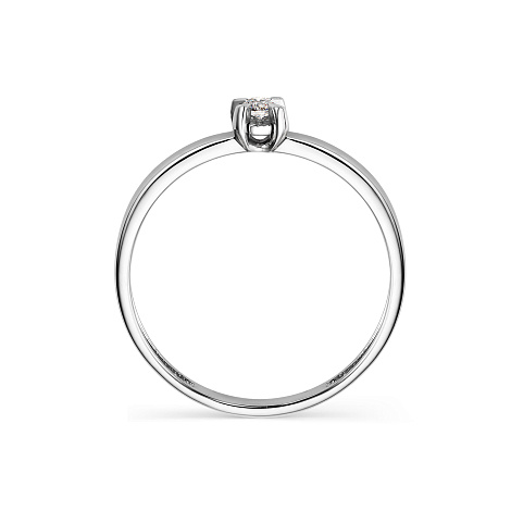 Изящное помолвочное кольцо с сверкающим бриллиантом выполнено из белого золота 585 пробы