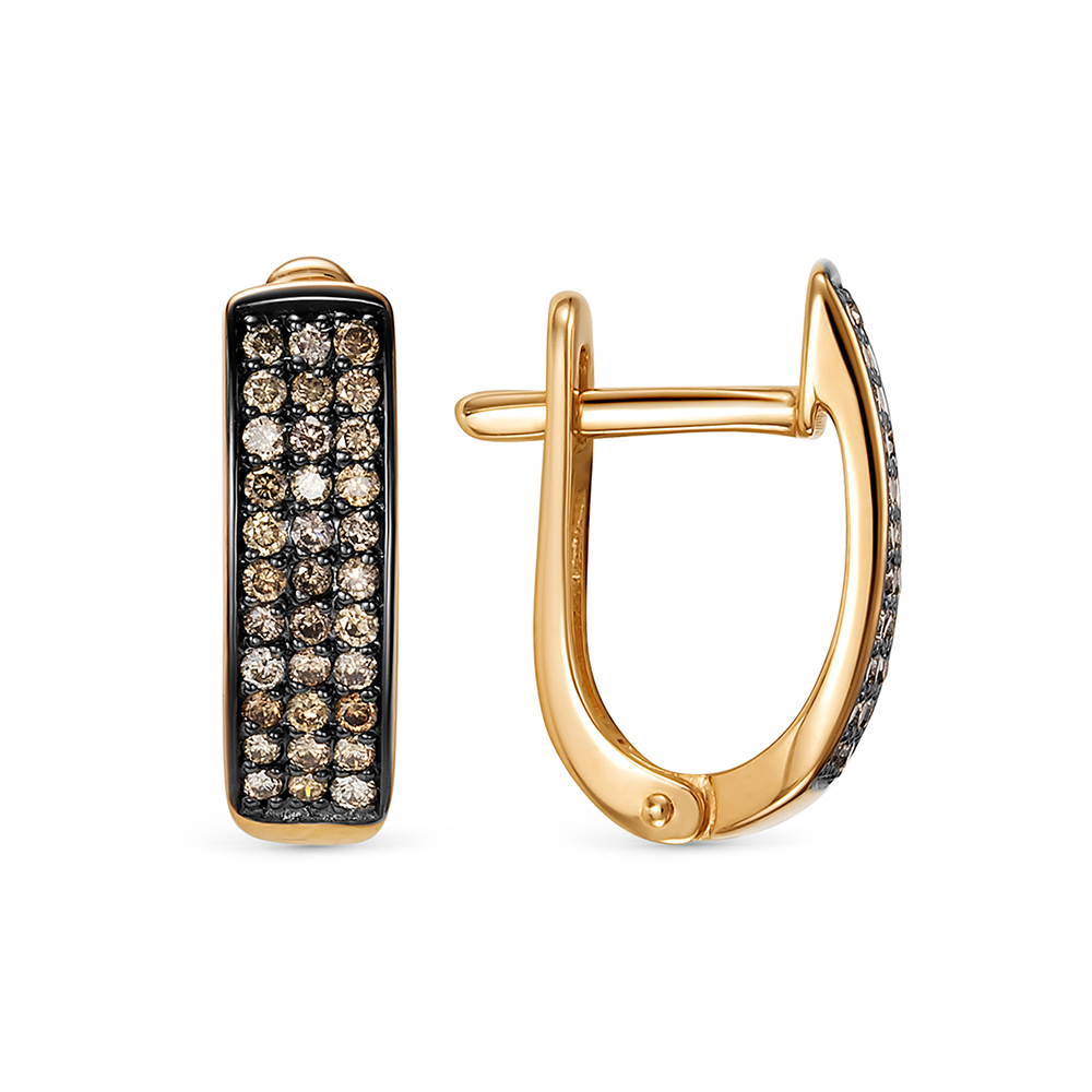 Элегантные серьги из красного золота с коньячными бриллиантами и английским замком