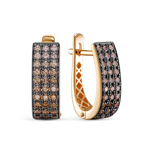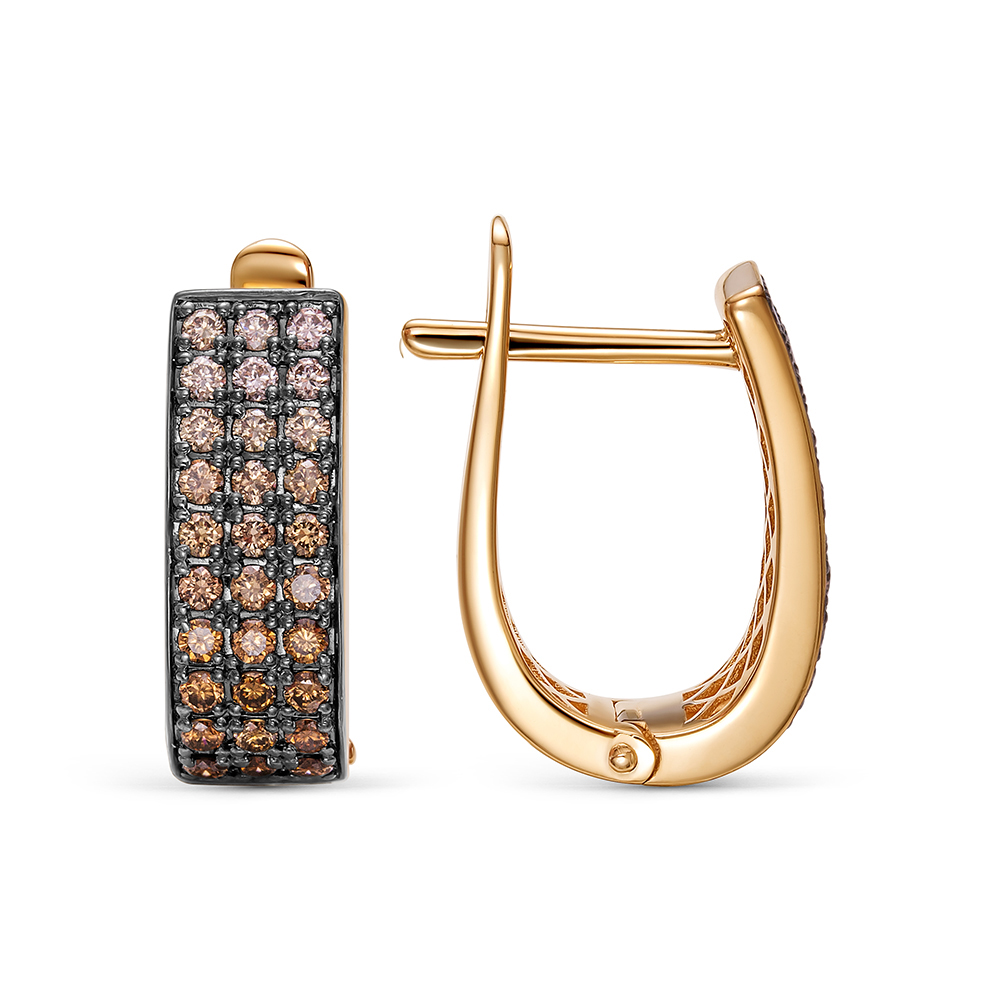 Элегантные серьги из красного золота с коньячными бриллиантами и английским замком