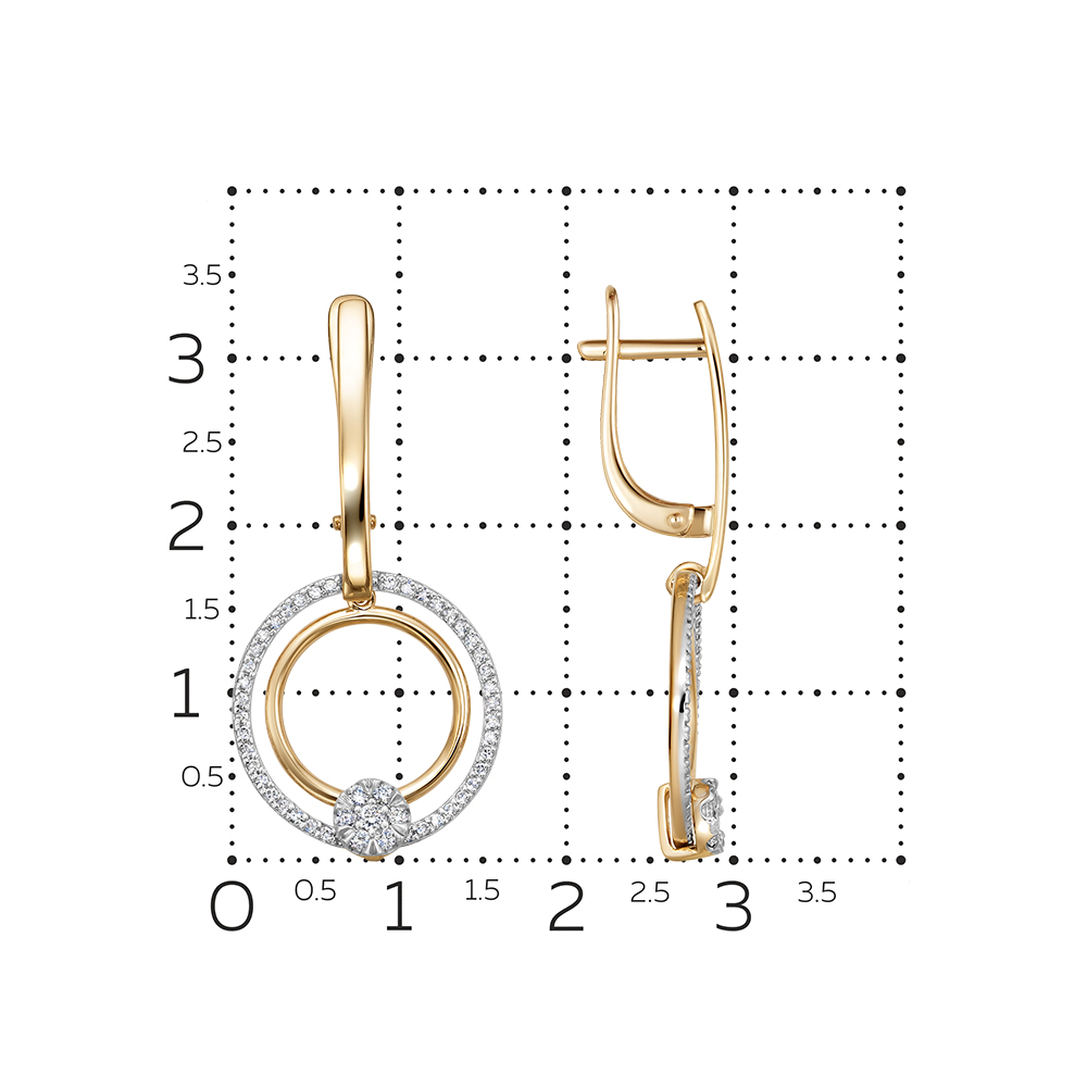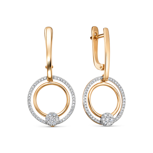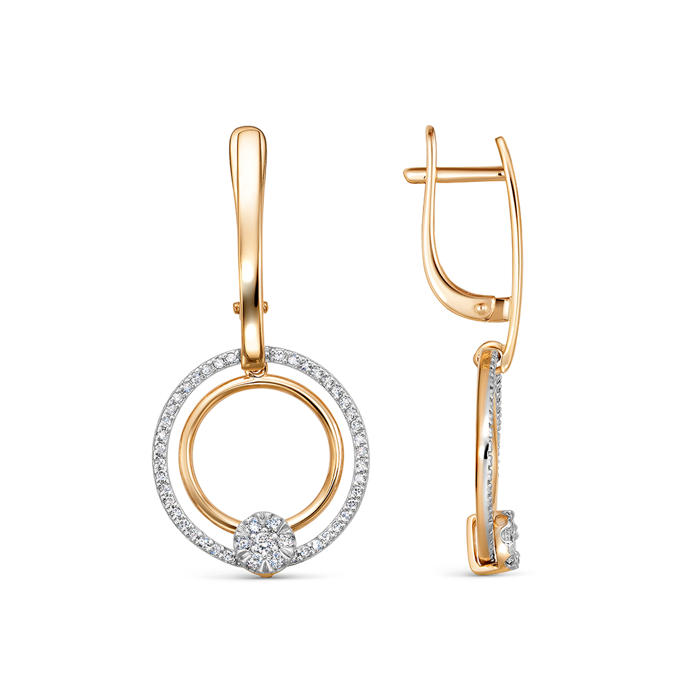 Элегантные удлинённые серьги из красного и белого золота 585 пробы, украшенные бриллиантами