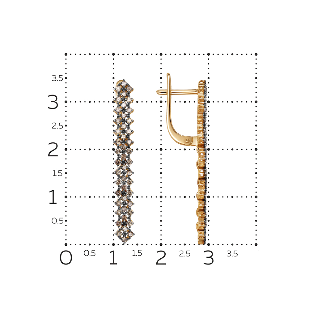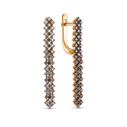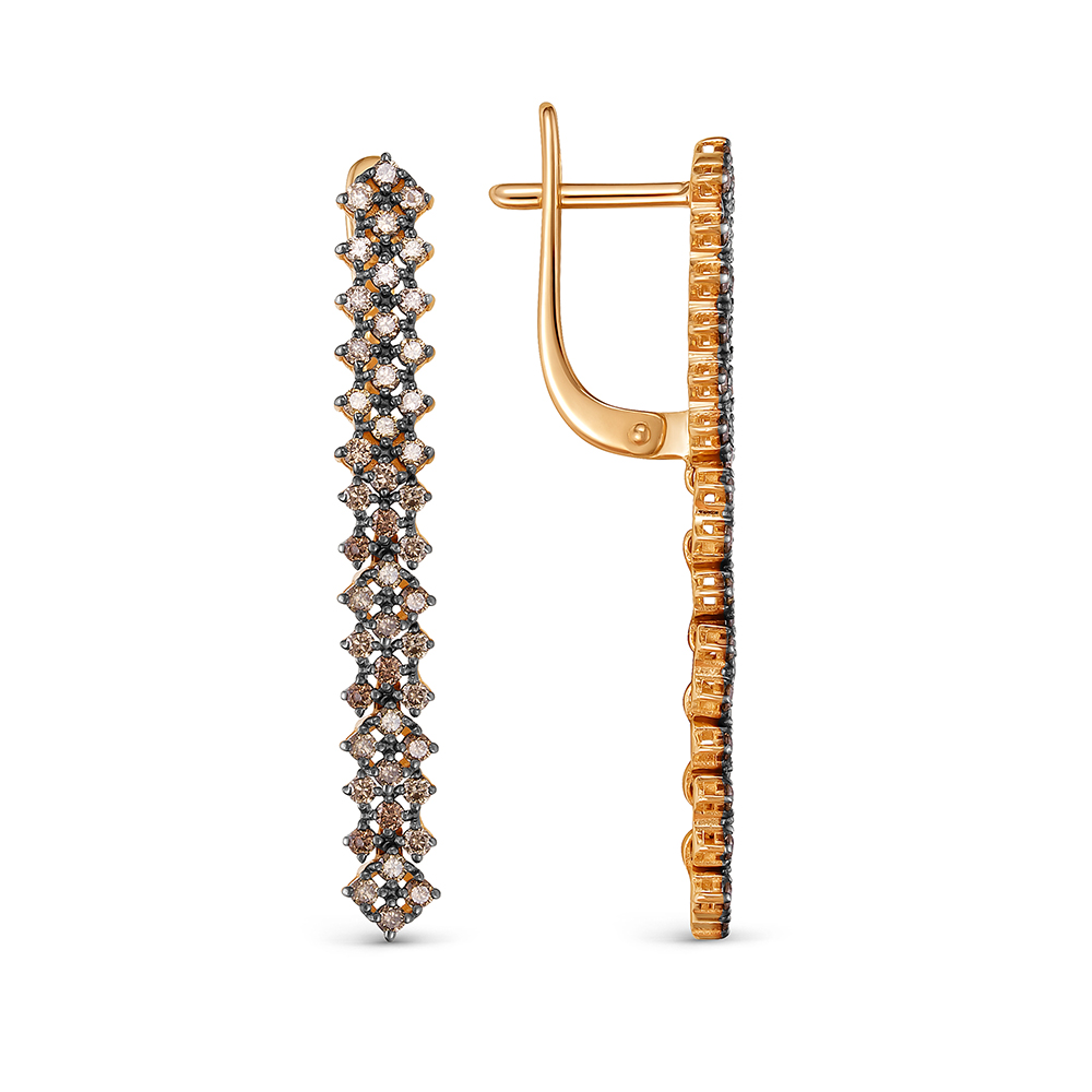 Элегантные серьги из красного золота 585 пробы с коньячными бриллиантами и английским замком