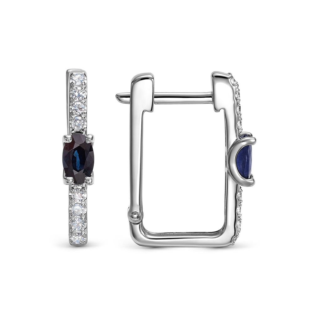 Элегантные серьги из белого золота 585 пробы с сапфирами и бриллиантами